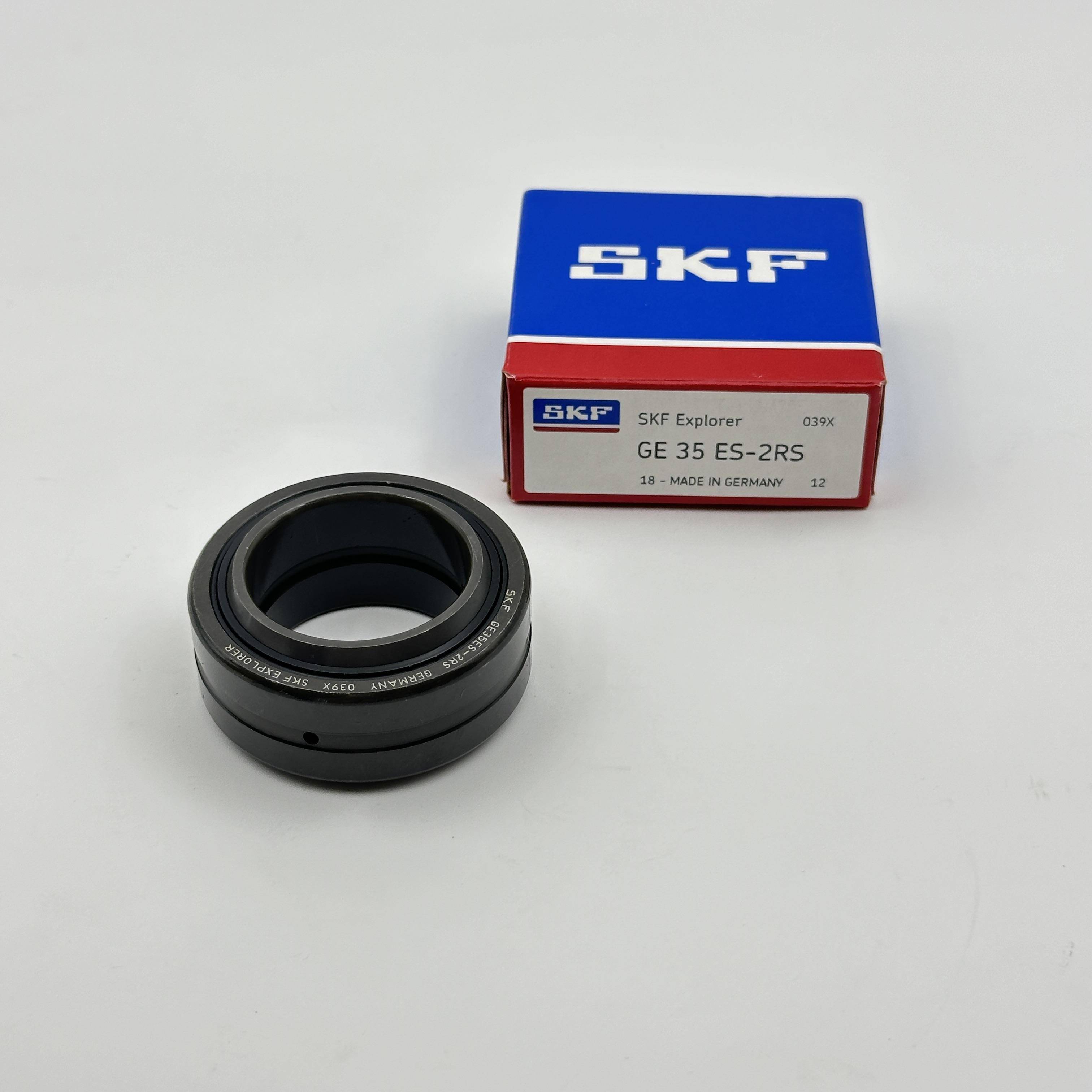 GE 35 ES-2RS is a maintenance-required, double-lip sealed metric radial spherical plain bearing from SKF. Radial spherical plain bearings are engineered to accommodate radial loads, combined radial and axial loads, and significant misalignment in mechanical systems. This specific model features a steel/steel sliding contact surface combination, double-lip contact seals on both sides, and lubrication holes with annular grooves in both rings for easy relubrication.