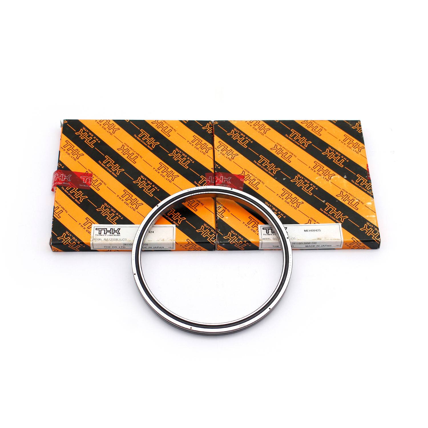RA12008UUC0 - это высокоточный, тонкосеченный роликовый подшипник из серии RAU THK (интегрированный тип внутреннего / наружного кольца, взаимозаменяемый с серией RA). Он имеет цилиндрические ролики, расположенные ортогонально в V-пазах под углом 90 °, разделенные распорным фиксатором, что позволяет одному подшипнику выдерживать радиальные, осевые и моментные нагрузки во всех направлениях.