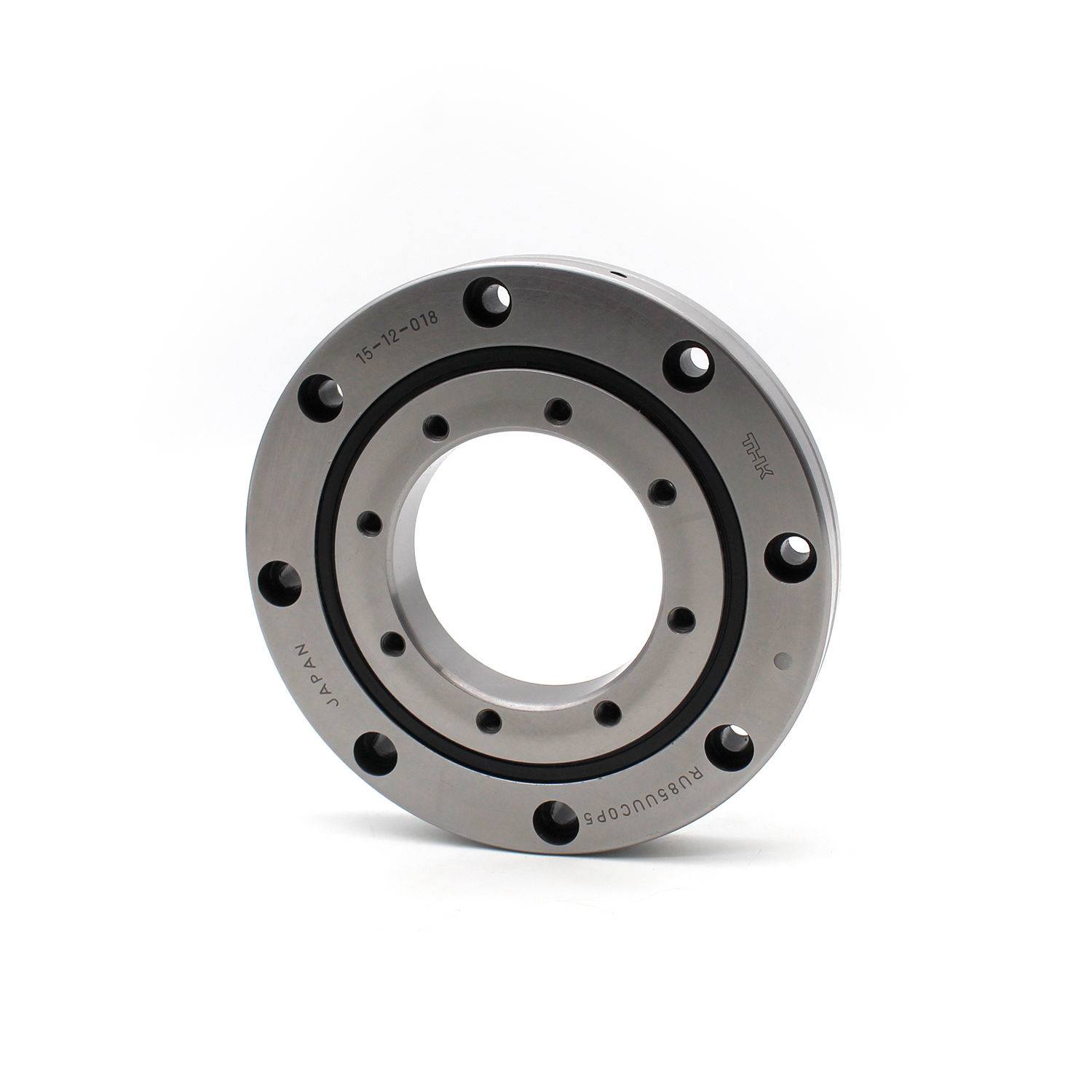 RU85UUC0P5 - это высокоточный встроенный поперечно-роликовый подшипник (поперечно-роликовое кольцо) из серии THK RU. В нем представлены цилиндрические ролики, поочередно расположенные на высокоточных дорожках качения 90 в, управляемые распорным фиксатором. Эта конструкция позволяет подшипнику одновременно поддерживать радиальные, осевые и моментные нагрузки в одном компактном узле. Модель оснащена на заводе двойными бесконтактными резиновыми уплотнениями (UU), стандартным радиальным внутренним зазором (C0) и точностью P5, что обеспечивает исключительную точность вращения, жесткость и устойчивость к загрязнениям для высокоточных систем движения.